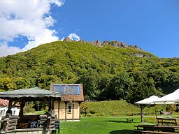 パークゴルフ場から望む八剣山 | 豊滝小学校から望む八剣山 |